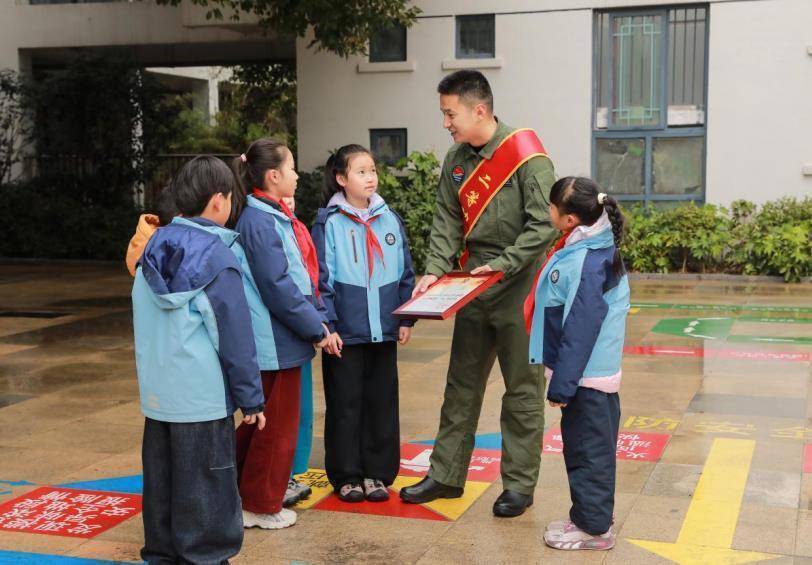 随后,陈曙身着飞行服走进合肥市逍遥津小学教育集团金都华庭校区,与刚结束期末考试的孩子们分享荣耀时刻,并带来一堂别开生面的国防教育课。他向孩子们展示立功喜报,生动讲述自己在海天之上的训练历程与赤诚报国情怀,勉励孩子们从小树立远大理想,刻苦学习知识,坚持锻炼身体,努力成长为能为国家贡献力量的新时代少年。