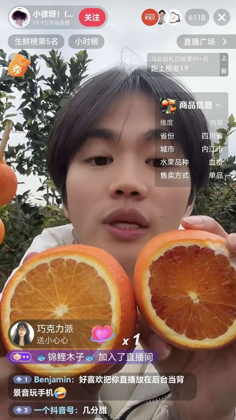 4个小时后,这场田间直播收获了一份成绩单:销售资中血橙8万余斤,累计销售额突破50万元。
