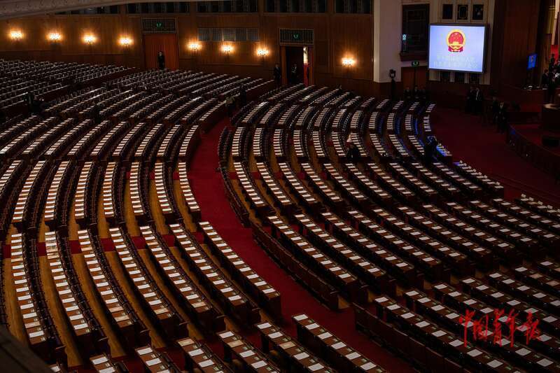 3月9日,北京,十四届全国人大四次会议第二次全体会议在人民大会堂举行。会议开始前的大会堂。中青报·中青网记者 李隽辉/摄