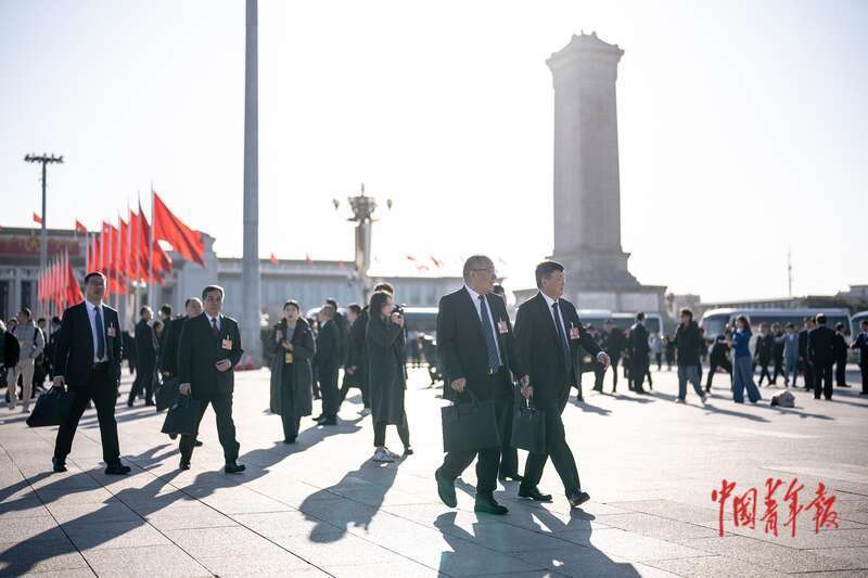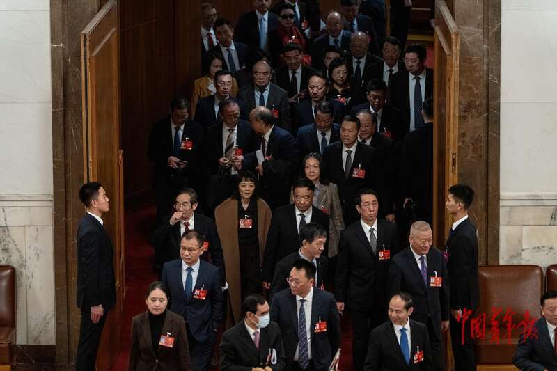 3月9日,北京,十四届全国人大四次会议第二次全体会议结束后,全国人大代表们走出会场。中青报·中青网记者 李隽辉/摄