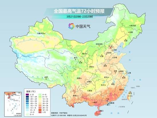 r21日:最高气温10°C线将北抬至今年来最北界,位于内蒙古东北部至黑龙江中部一带,东北地区南部、华北大部及以南地区将普遍超过15°C,华北南部、黄淮多地最高气温将达到20°C左右。